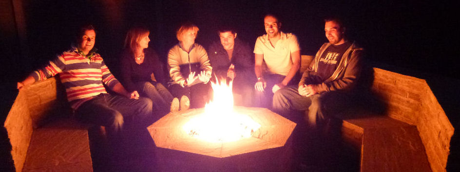 A rare octagonal firepit with octagonal seating. Our customer looks very pleased with the result, and so does her family