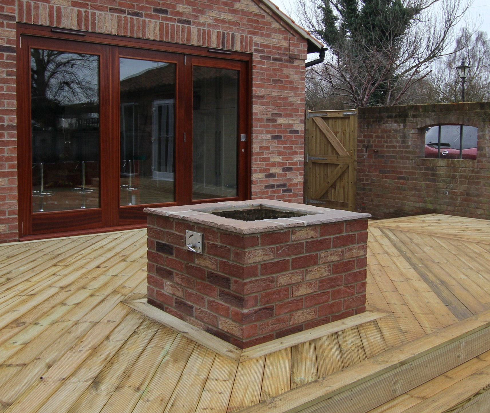 Actually, it’s not on the deck, but built up from the ground first, then surrounded by the deck. The ventilation slots are hidden under the decking.