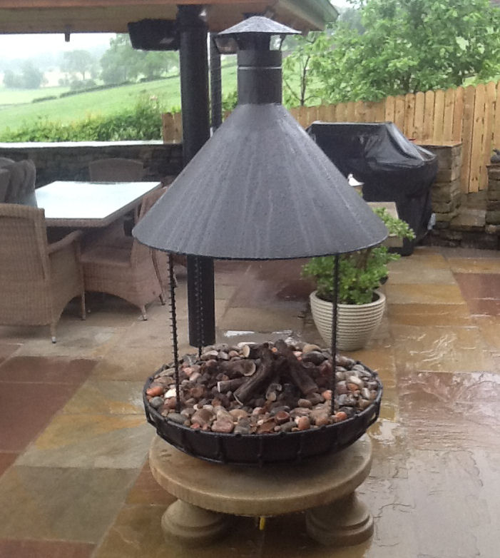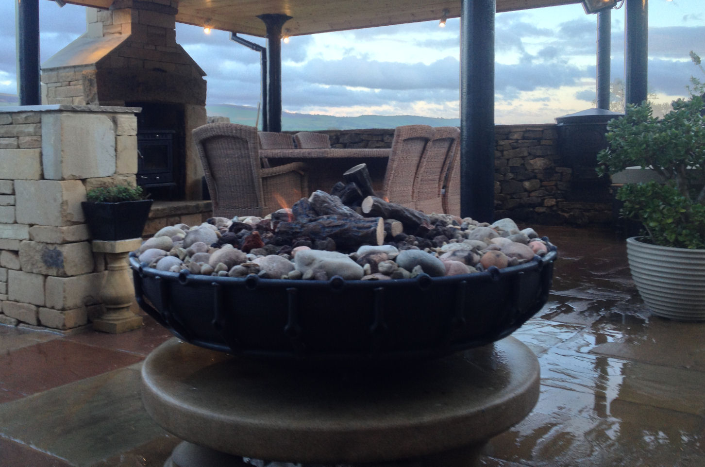 This customer has placed natural stone pebbles around the area outside of the burner. I told him to make sure none of those stones end up in the fire, as they could explode.