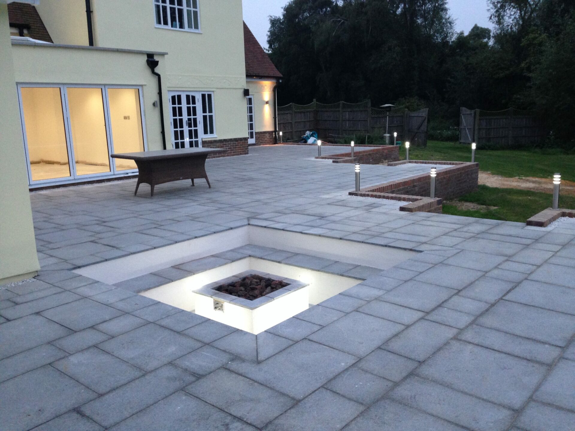 An unusual sunken firepit. This must be a natural gas burner as you would not be able to install an LPG burner in a sunken area like this.