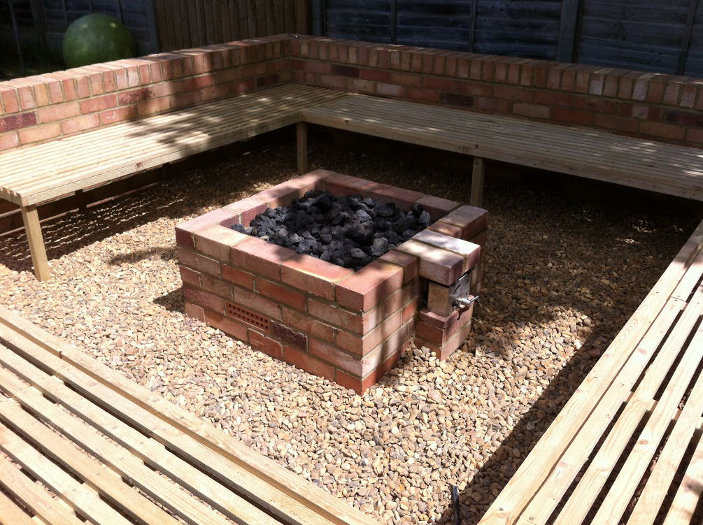 This customer transform a wasted corner of his garden, into a simple but effective fire pit and seating area in just a few days.
