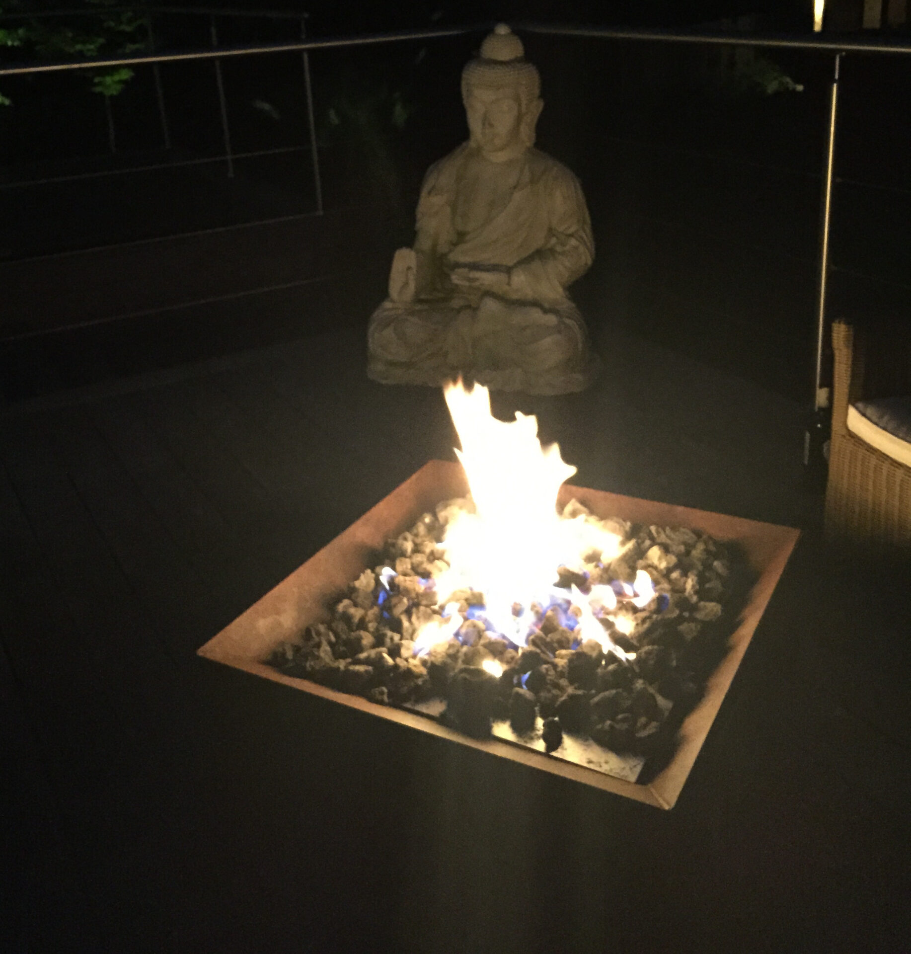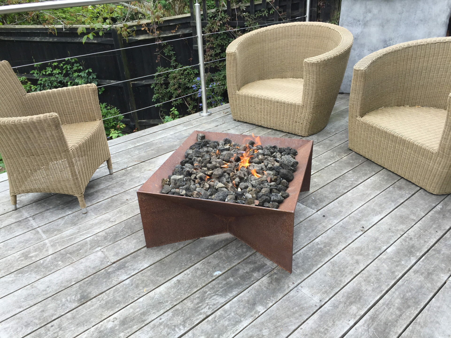 This customer converted his existing wood burning firepit by installing one of our square gas burners.