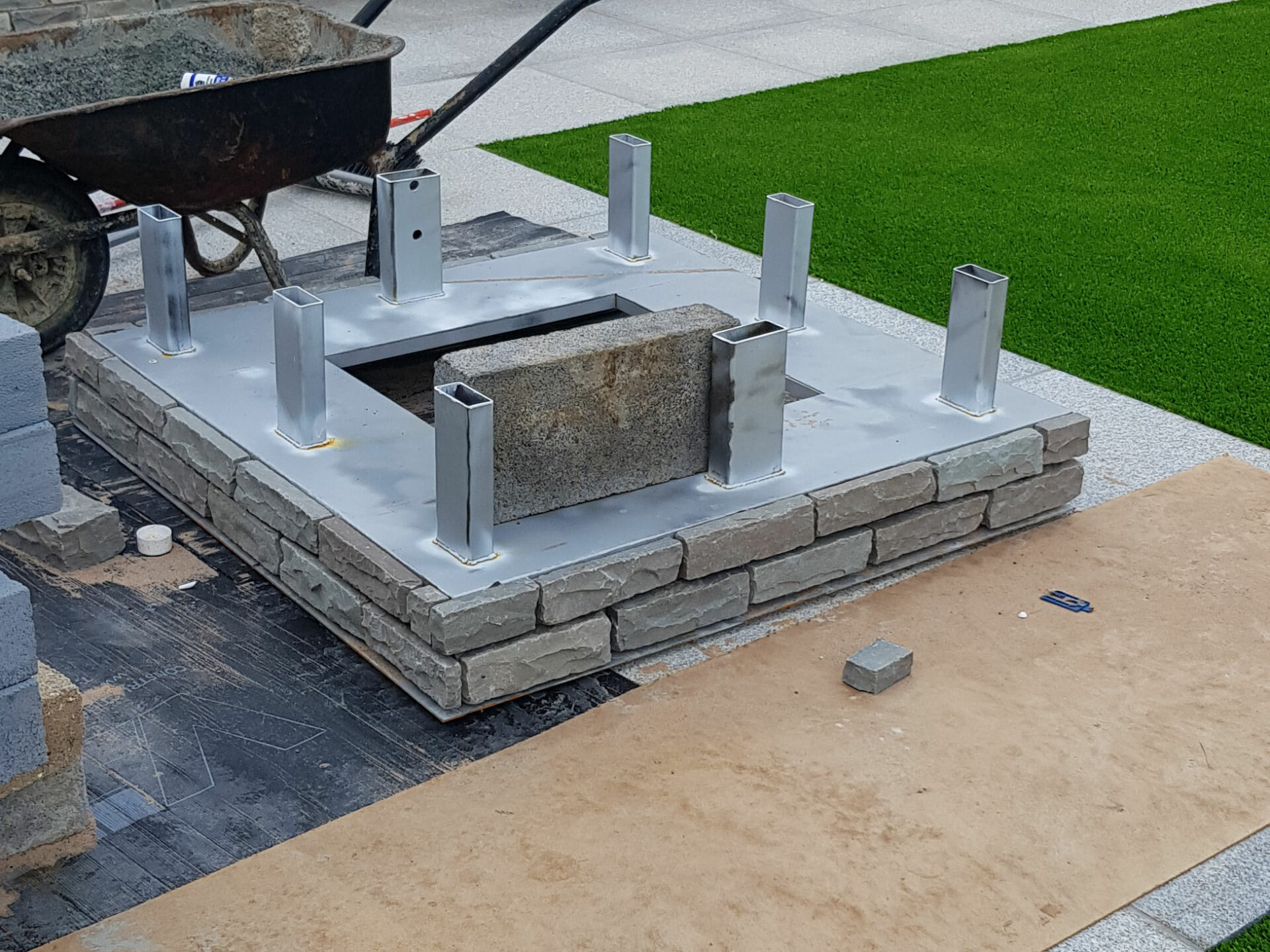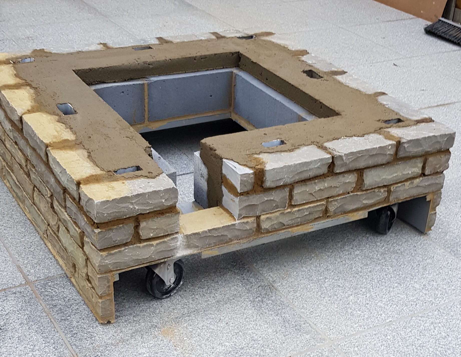 A stone firepit could weigh up to quarter of a tonne, so he first made a strong metal frame on wheels. Then built the firepit on top from standard stone blocks and cladding. This allowed him to move the whole pit when needed.