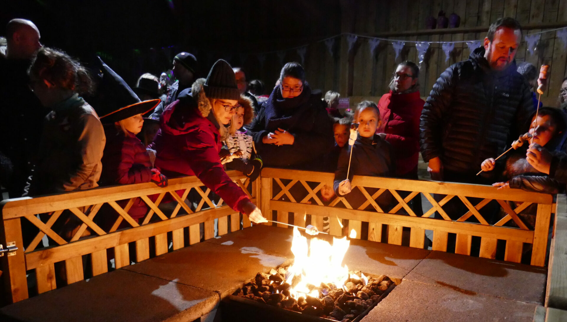 Kids and big kids toasting marshmallows over one of our burners installed at a commercial venue.