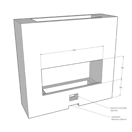 For a hole in the wall style fireplace using our burner, you'll need the rectangular gas fire pit burner kit. Ours is 18kW, adjustable, uses a battery electric ignition for easy lighting, and with 2x rows of burner jets, gives a substantial depth to the fire as well as nearly a meter of flames.