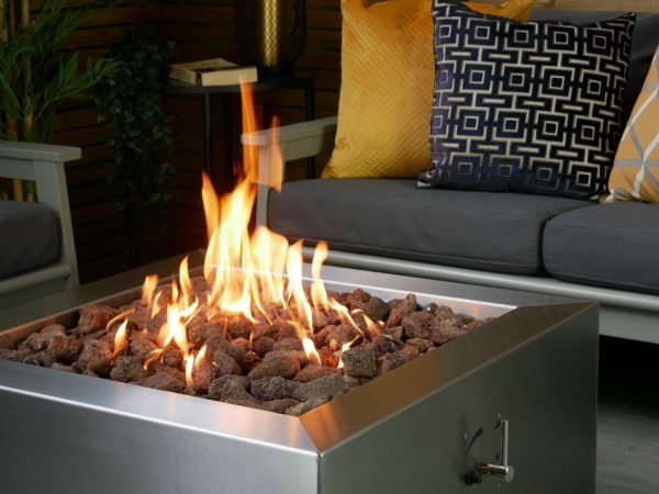 This modern, stainless steel gas fire pit table will brighten up any contemporary outdoor space. The brushed finish surrounding the burner is polished in a circular motion, reflecting and enhancing the flames delightfully and inspiring the Saturn’s planetary name.